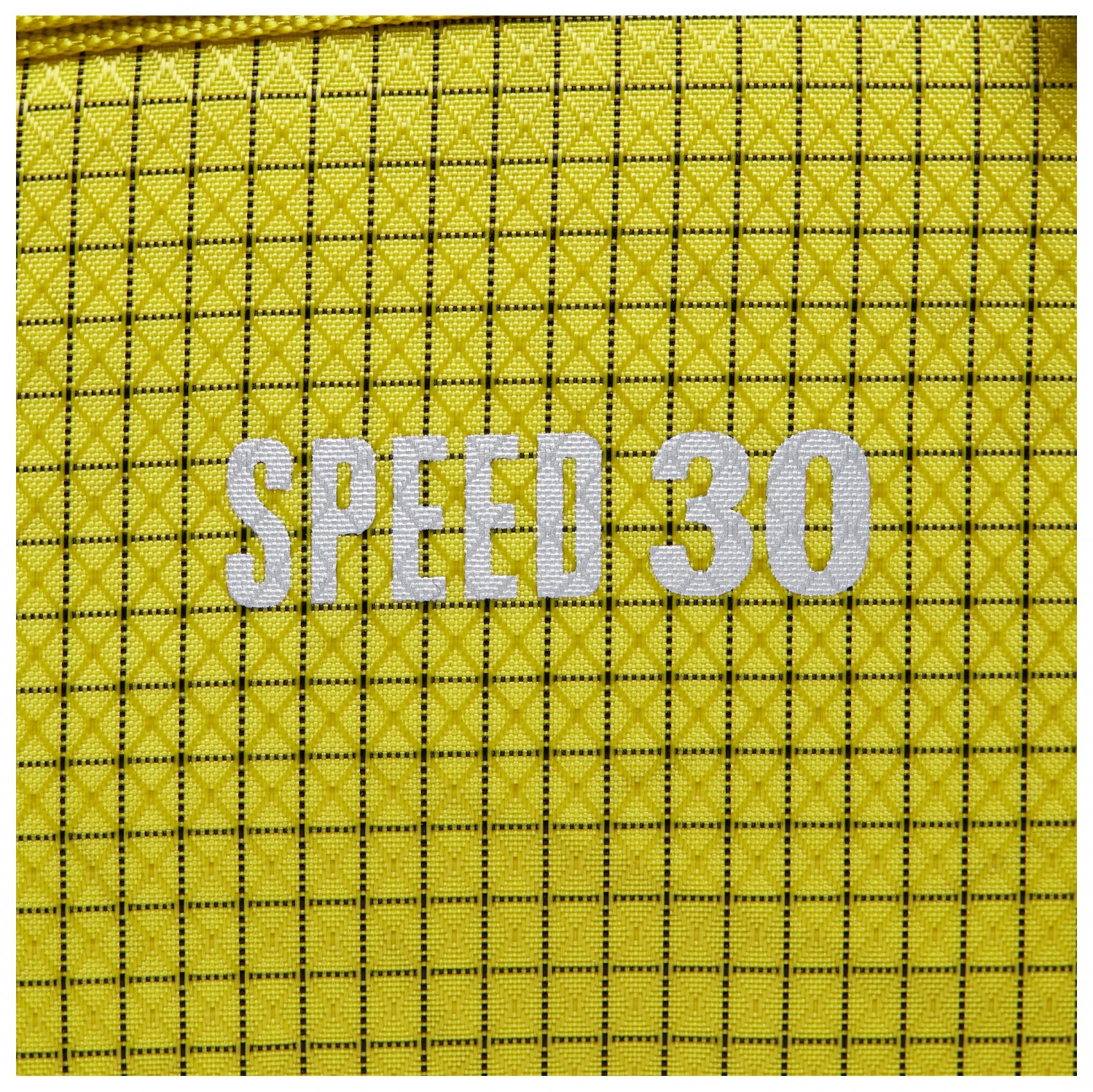 Wichtige Utensilien, die unterwegs nicht fehlen dürfen, haben beim Speed jeweils einen eigenen Platz. Das Kletterseil, die Steigeisen und die Eisgeräte lassen sich eigens verstauen und sind dann an genau der richtigen Stelle, wenn es drauf ankommt. Das Deckelfach des Rucksacks verfügt über einen Reißverschluss und kann zudem in der Höhe verstellt werden.