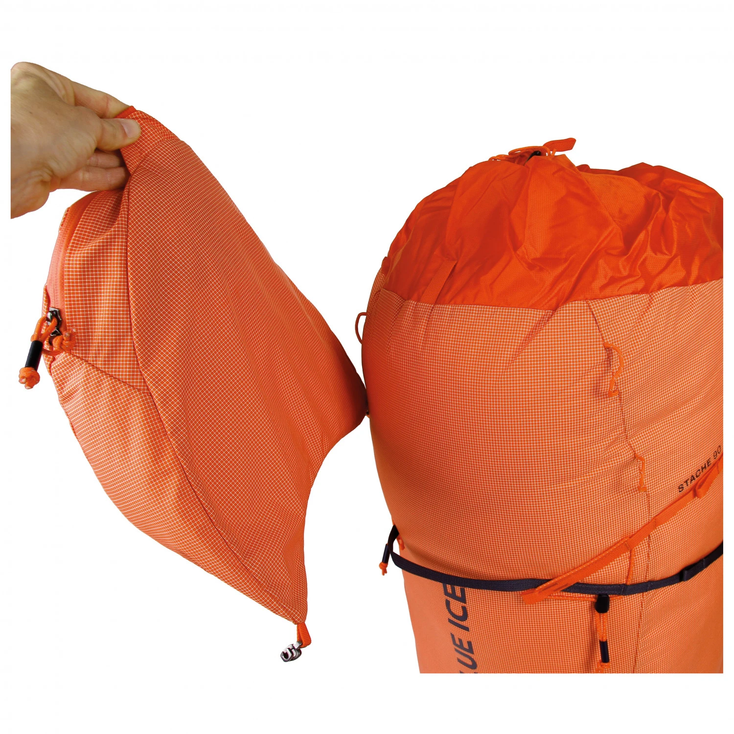 Der Stache 90 von Blue Ice ist ein erstaunlich leichter, vielseitiger Unisex-Kletterrucksack mit großem Fassungsvermögen. Er eignet sich für ambitioniertes Alpinklettern unter herausfordernden Bedingungen. Mit einem Gewicht von lediglich 920 Gramm und einem Volumen von 90 Litern verbindet er Leichtigkeit und Leistungsfähigkeit. Ohne Deckel, Rückenplatte und Federstahlrahmen, die abnehmbar sind, wiegt der Rucksack sogar nur 700 Gramm. Die Deckeltasche kannst Du im Basislager beispielsweise als Waschtasche benutzen. Der Federstahlrahmen stützt beim Tragen und schont den Rücken, bei der Gipfelbesteigung kannst Du das zusätzliche Gewicht jedoch sparen.