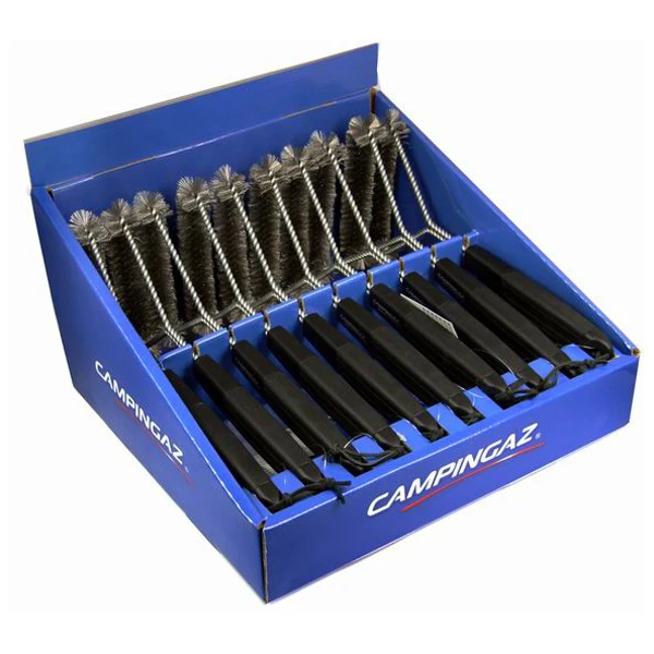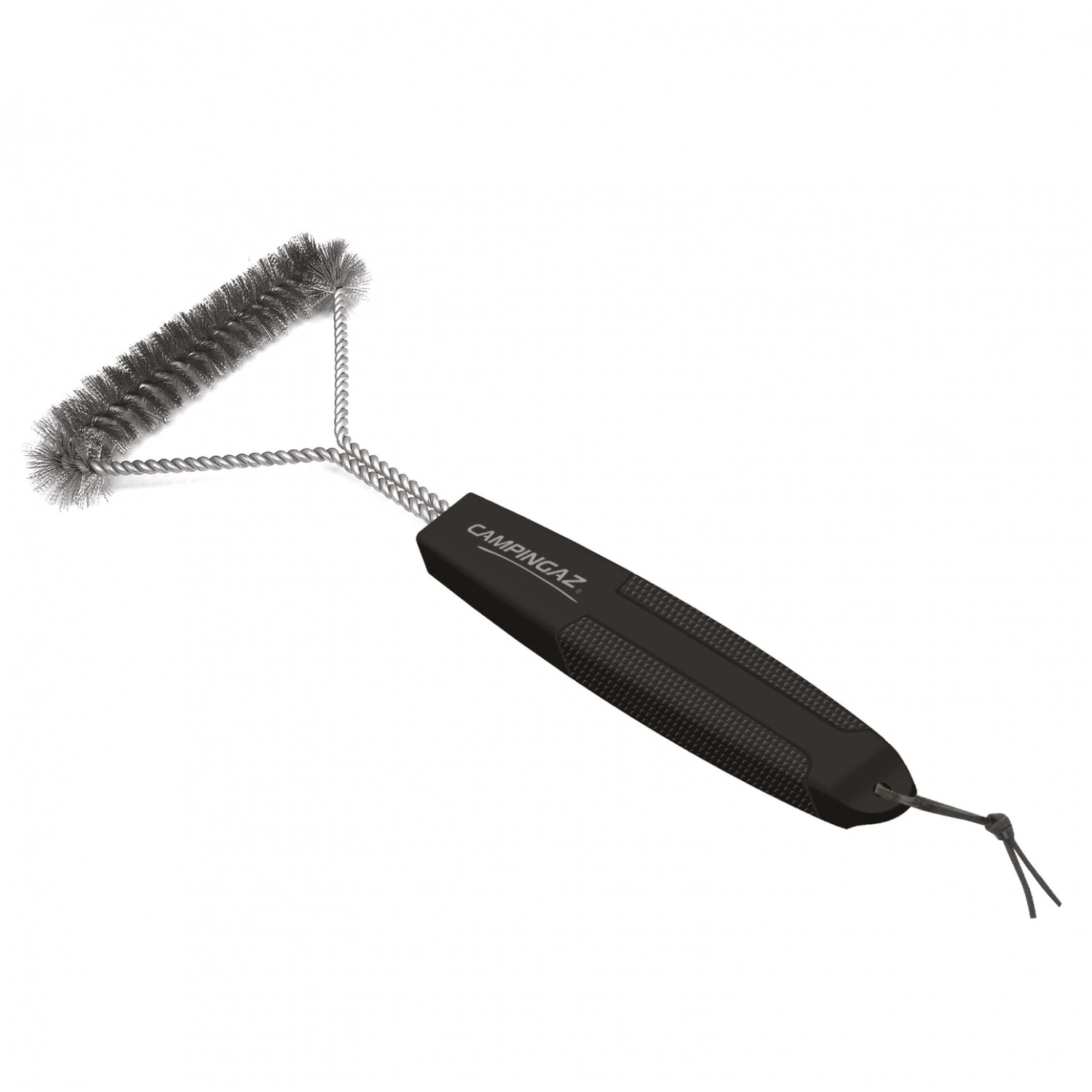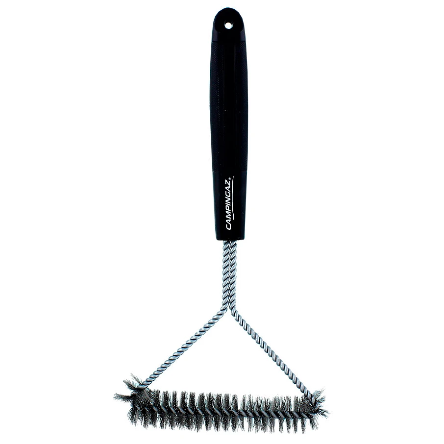 Die Triangel Grillbürste von Campingaz ist ideal für eine schnelle, gründliche Reinigung auch der Ecken und Zwischenräume des Grillrostes. Dank des breiten Bürstenkopfes kannst Du schnell viel Fläche putzen, während die schmalen Seiten perfekt für schwieriger zugängliche Stellen sind. An der ledernen Schlaufe kannst Du die Grillbürste geschickt aufhängen.