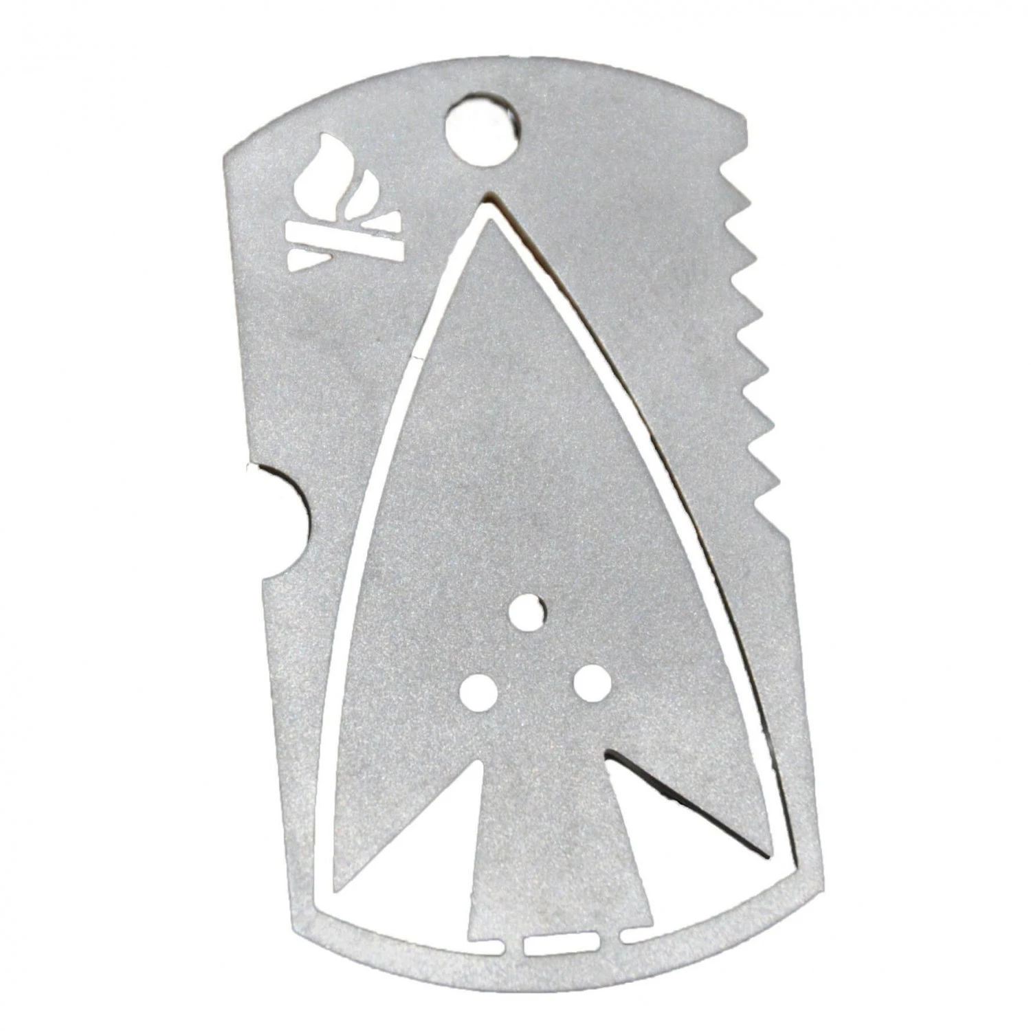 Sieht aus wie die typische Army-Hundemarke, ist aber ein Outdoor-Utensil voller Details. In der Mitte der Survival Dog-Tag von Bushcraft Essentials befindet sich ein Pfeil, der in Notsituationen herausgebrochen werden kann. Am Rand findet sich eine Säge, sowie eine Fläche für eine Klinge (aus Sicherheitsgründen nicht eingeschliffen, aber leicht selbst nachzuholen). Achtung: die Dog Tags von Bushcraft Essentials haben scharfe Kanten und sollten zum Schutz von Haut und Kleidung mit Gummi-Schutz kombiniert werden.