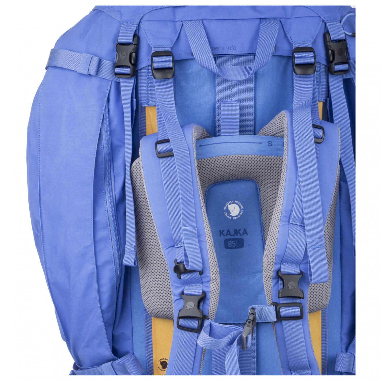 Bereit für schwere Lasten und lange Touren – der Fjällräven Kajka 85! Der Trekkingrucksack mit stabilem Holzrahmen garantiert einen optimale Lastenverteilung auf Schultern und Hüfte. Dabei lässt sich das Tragesystem individuell anpassen! Die Schulterbreite und die Rückenlänge sind in Stufen verstellbar, die gepolsterten Schultergurte, der Hüftgurt und der Brustgurt lassen sich ebenfalls passgenau regulieren. Das robuste Obermaterial ist wasserabweisend und bei starkem Regen ist die integrierte Regenhülle schnell zur Hand! Der Rucksack ist für ein Trinksystem ausgelegt, bietet aber in den Mesh-Seitentaschen auch Platz für Trinkflaschen.
