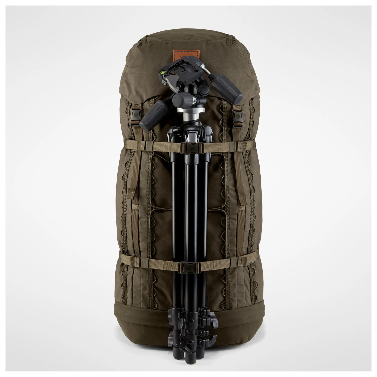 Mit jeder Menge Platz und einem robusten Rucksack, können die Trekkingtouren mit dem Singi 48 von Fjällräven kommen. Durch die Öffnung an der Unterseite des Rucksacks, kann zu jeder Zeit auch von unten Zugriff zum Hauptfach stattfinden. Die seitlichen Kompressionsriemen ermöglichen eine Fixation des Rucksacks und verhindern störende Hebelwirkungen beim Tragen. Der gepolsterte Hüftgurt verfügt über zwei RV-Taschen und liegt sehr angenehm an. In Kombination mit dem stabilen Holzrahmen und dem gepolsterten Rückenteil ermöglicht der Rucksack einen hohen Tragekomfort auch bei langen Einsätzen. Das integrierte Regencover lässt sich bei langen Regenfällen einfach über den Rucksack ziehen und schützt Denselben und damit auch die darin transportierten Gegenstände vor Nässe. Neben den vielen funktionalen Eigenschaften sieht der Rucksack einfach lässig aus und macht eine hervorragende Figur.
