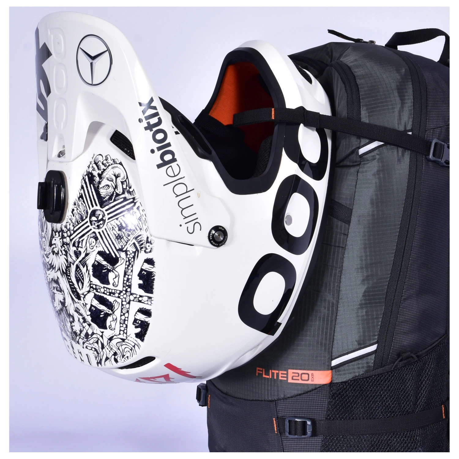 Sein Tragesystem aus Schulterträgern, Hüftgurt und Brustgurt sorgt für eine gute Passform, ohne dass der Rucksack dabei verrutscht. Zudem ist der Rücken gepolstert, damit der Rucksack bequem auf Deinem Rücken liegt. Praktische Fächer wie das Brillenfach, das Organizer-Fach, der Schlüsselclip, die Fixierriemen für den Helm und die Schlaufe zum Anbringen eines Rücklichts runden das durchdachte Design des Rucksacks ab. Am Brustgurt gibt es noch eine kleine Signalpfeife für den Notfall. Außerdem hat der Flite 20 eine Regenhülle, die bei schlechtem Wetter zum Einsatz kommt. Zudem ist er kompatibel mit einer Trinkblase (nicht im Lieferumfang enthalten).