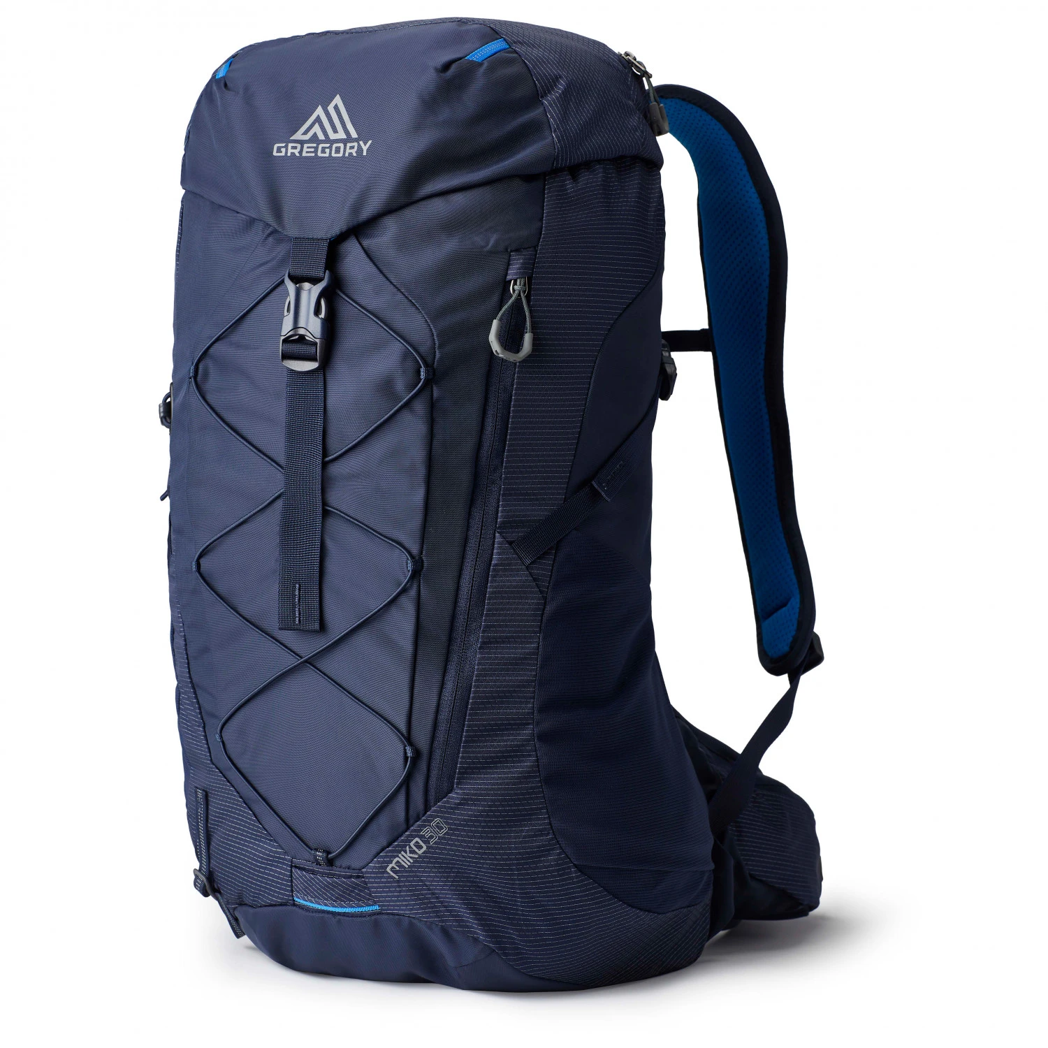 Der Miko 30 von Gregory als größtes Modell der Serie ist auf den ersten Blick ein kompakter, aber trotzdem voluminöser Daypack-Rucksack, der es wahrlich in sich hat! Da ist erstmal das robuste, teils aus recyceltem Polyamid gefertigte Außenmaterial, das außerdem über eine PFC-freie DWR-Beschichtung verfügt, die es wasserabweisend macht. Damit nicht genug bietet der Miko 30 unglaublichen Tragekomfort, da er sich sehr körpernah tragen lässt, und damit kaum merklich „mitreist“. Denn die dank BioSync-Suspension elastischen Schulterträger und der Hüftgurt passen sich durch einen gewissen Stretch-Anteil perfekt an den Träger/die Trägerin an. In den großen Hüftgurt-Taschen kannst Du beispielsweise Dein Smartphone sicher verstauen, und hast es so dennoch stets zur Hand. Durch den im Gegensatz zu den kleineren Modellen der Miko-Serie großen Stauraum haben hier auch extra Bekleidungsschichten und Verpflegung Platz! Für lange Tage draußen, an denen es auf bequemes Tragen ankommt!
