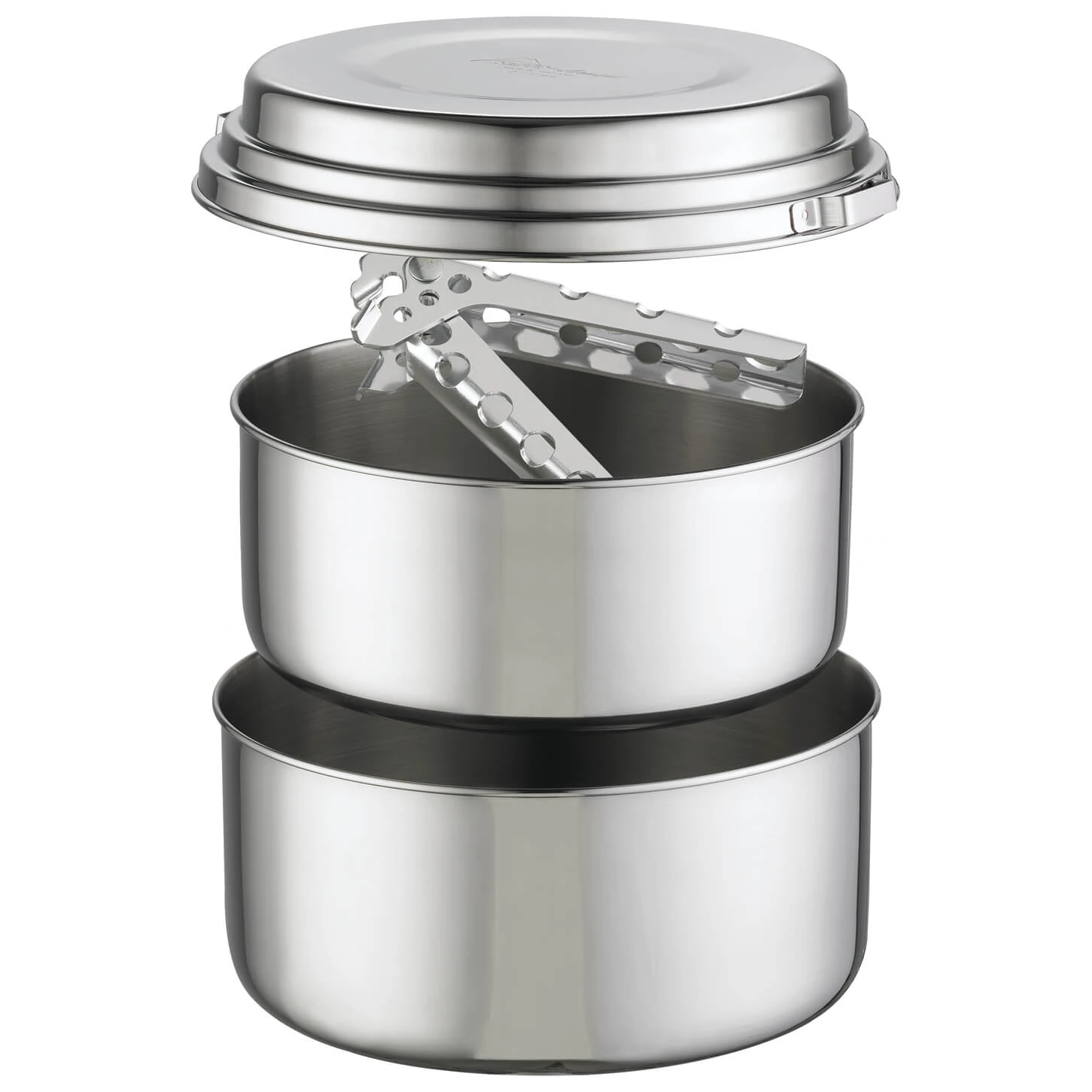 Eine Anschaffung fürs Outdoor-Leben: Das robuste Alpine 2 Pot Set von MSR! Aus Edelstahl gefertigt ist es langlebig und stabil, perfekt für ausdauernden Outdoor-Einsatz. Der Edelstahl nimmt zudem keine Geschmäcker an und ist lebensmittelecht. Die beiden Topfgrößen sind so gewählt, dass man zum Beispiel auch größere Portionen Nudeln mit Soße separat zubereiten kann. Im Lieferumfang befinden sich auch die entsprechenden Topfdeckel, so spart man beim Kochen Brennstoff ein. Eine Griffzange liegt ebenfalls bei, so ist das Handling auch kein Problem. Alles wird dann zusammen in einem praktischen Packsack verstaut, man hat unterwegs so alles immer beieinander und optimal verstaut!