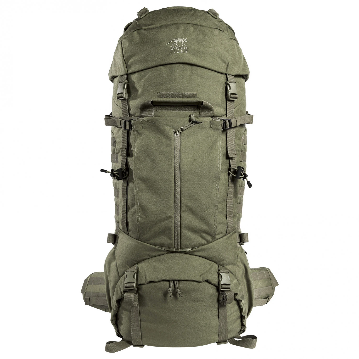 In seinem großen Hauptfach ist ausreichend Platz für Verpflegung und Ausrüstung für mehrere Tage. Das separate Bodenfach ist praktisch für dreckige Wäsche. Der Deckel ist dreifach unterteilt, damit mehr Ordnung herrscht und lässt sich in der Höhe verstellen. So lässt sich der Packraum unkompliziert erweitern. Dank Molle-System lässt sich der Rucksack mit individuellen Erweiterungen versehen. Für den Trinkschlauch gibt es zwei Auslässe. Besonders praktisch ist die vielseitige Fronttasche für Helm oder andere Gegenstände.