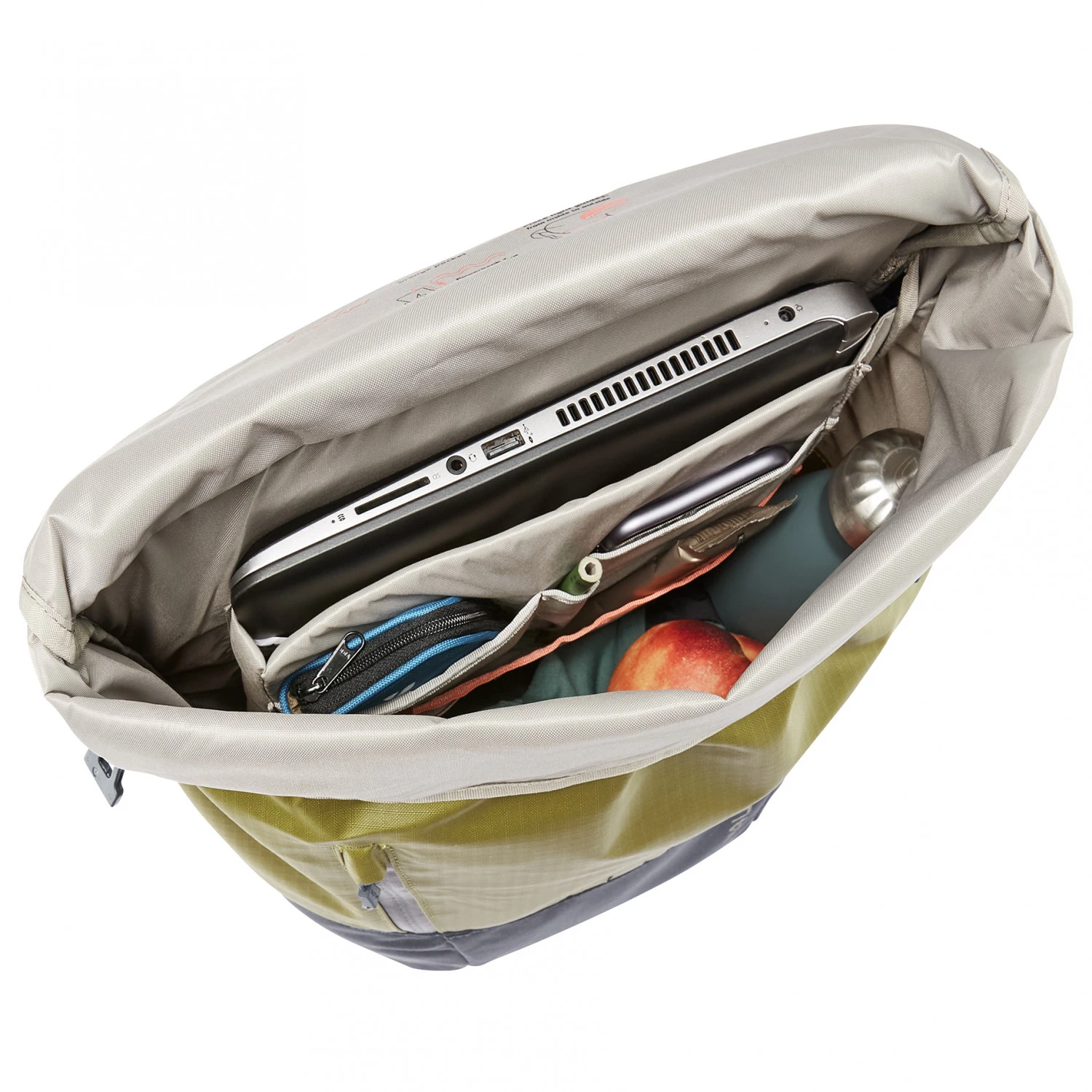 Der Bike-Rucksack kommt mit einem übersichtlichen Hauptfach das mit einem Wickelverschluss geschlossen wird und Platz für ein 13,3″ Notebook bereit hält. Das Notebookfach ist easy von oben und seitlich zugänglich. Die aufgesetzte Handytasche und der Schlüsselhalter sind schnell zugänglich. Der Rucksack hat außerdem eine Fronttasche mit Reißverschluss und einen Blinklichthalter gibt es en top. Desweiteren gibt es eine seitliche Flaschentasche aus stretchigem Material. Der Rucksack hat einen gepolsterten Rücken und bequeme ErgoShape-Schultergurte, einen oberen Tragegriff und einen Brustgurt für optimalen Sitz. Der Rucksack kann mit einem LED Lichtleiter-Set ergänzt werden.